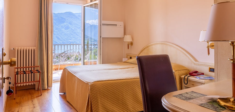 With windows overlooking the picturesque mountainside of Lake Como, this room comfortably sleeps two people